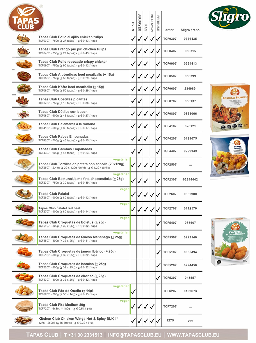 Hieronder alle artikelnummers van Tapas Club bij Sligro: