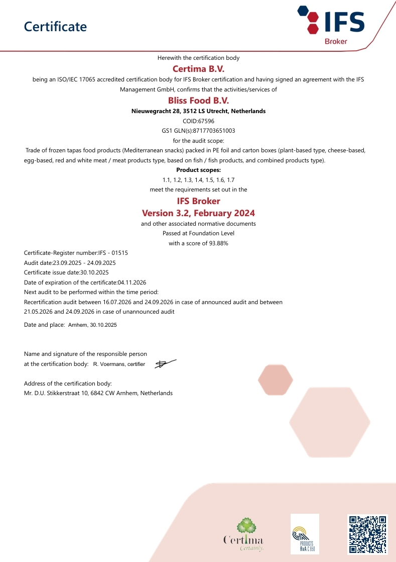 Algemene leveringsvoorwaarden Bliss Food BV